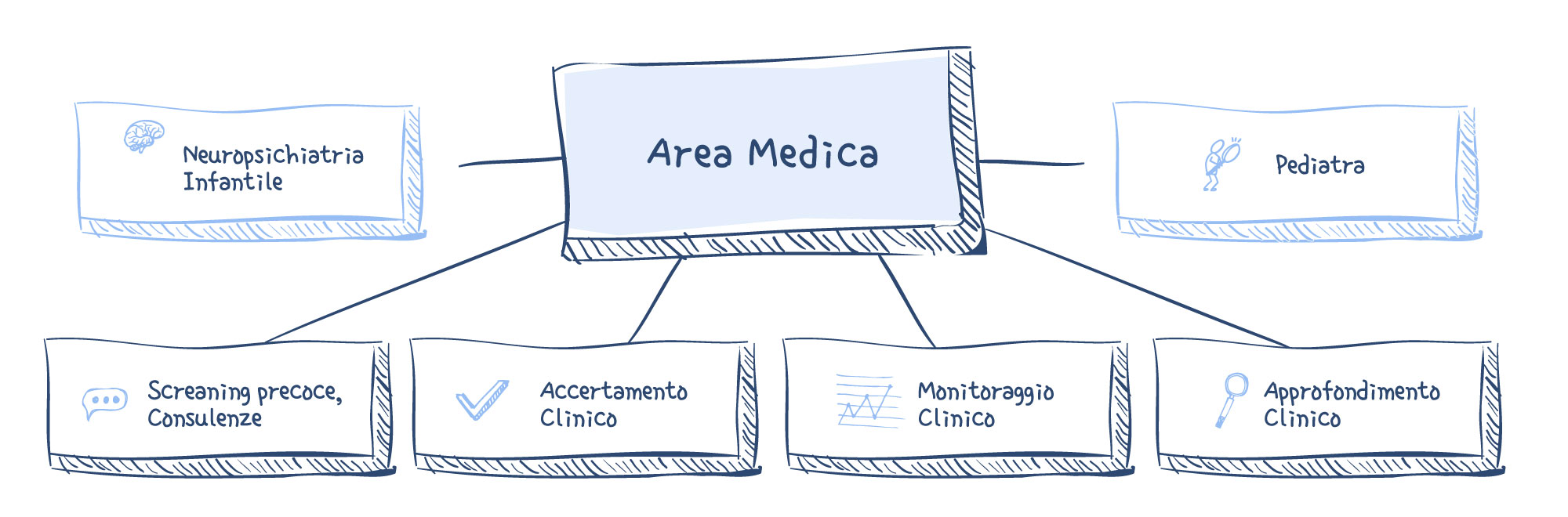 A Bluemers sappiamo quanto fondamentale sia il ruolo dell’area medica nella valutazione dei disturbi del neurosviluppo (es., comorbidità, diagnosi differenziale), e pertanto pensiamo possa essere cruciale il suo contributo nel (ri-)modulare il piano clinico-riabilitativo di ciascun bambino. Le specializzazioni mediche di riferimento sono la Neuropsichiatria Infantile e la Pediatria.